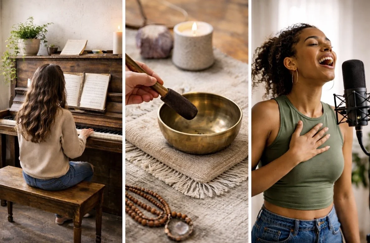 Before becoming a therapist, I spent more than two decades working as a vocal and expressive arts coach. My Master’s thesis, “Rising Into Song: Voicework in Psychotherapy,” explored the use of singing, songwriting, and voicework as tools for emotional processing and healing.